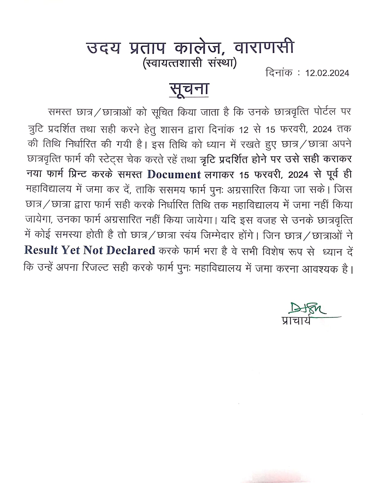 सूचना बी0एस-सी0 कृषि Semester I/ II/ IV/ VI एवं एमएससी कृषि Semester II आर0टी0आई0 के तहत उत्तर पुस्तिकाओं की छायाप्रति एवं चैलेंजिंग मूल्यांकन कराने हेतु